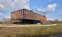 Het gebouw bestaat uit twee rechthoekige volumes die speels zijn geplaatst op de geluidswal. De ambitie was om het gebouw voor de toeschouwer te laten zweven. Om dit te kunnen bewerkstelligen zijn vakwerkliggers geplaatst achter de puien van de twee langsgevels. De twee dwarsgevels zijn voorzien van dezelfde vormtaal wat resulteert in een rustig en compleet beeld en tegelijkertijd stabiliteit geeft aan het geheel. Het transparante, gedraaid geplaatste volume op de tweede verdieping heeft een ander DNA. Daar is gekozen voor een constructie van slanke kokerkolommen en trekstangen.