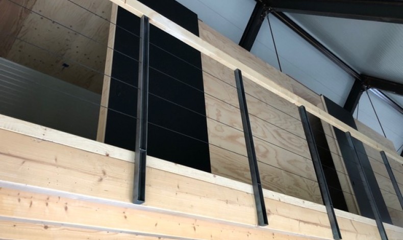 Zonder balkenrooster gefundeerd. Grote mate van ductiliteit. Stabiliteit in langs- en dwarsrichting in staalskelet verzekerd - stijve HSB kopgevels geheel vrij gedetailleerd