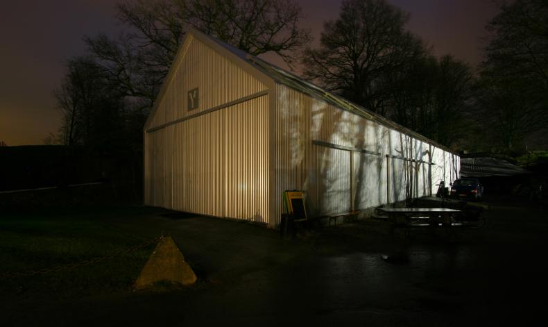 De staalconstructie is voorzien van binnendozen (met een aluminiumzinklaag) die op strategische plaatsen zijn geperforeerd om akoestische redenen. De buitenzijde – dak en gevel – is bekleed met een geprofileerde metaalplaat.