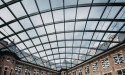 Waar oud en nieuw elkaar ontmoeten, ontstaan uitdagingen. De net niet-vierkante vorm van de binnenplaats, de aanwezigheid van een drietal torentjes op de hoeken, het niet mogen afdragen van spatkrachten en het niet mogen afsteunen op een steiger tijdens de montage, zorgden voor de nodige complexiteit bij het realiseren van dit stalen gridshelldak.