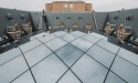 Een standaard beglazingssysteem met secundaire waterweg werd geïnstalleerd op het stalen rooster onder het glas. Normaal worden deze systemen gebruikt voor rechte structuren, zoals vlakke gevels of platte/schuine daken. Daarom werden voor deze toepassing naast impacttesten ook lucht- en waterdichtheidstesten uitgevoerd op een proefmodel om het systeem te valideren.