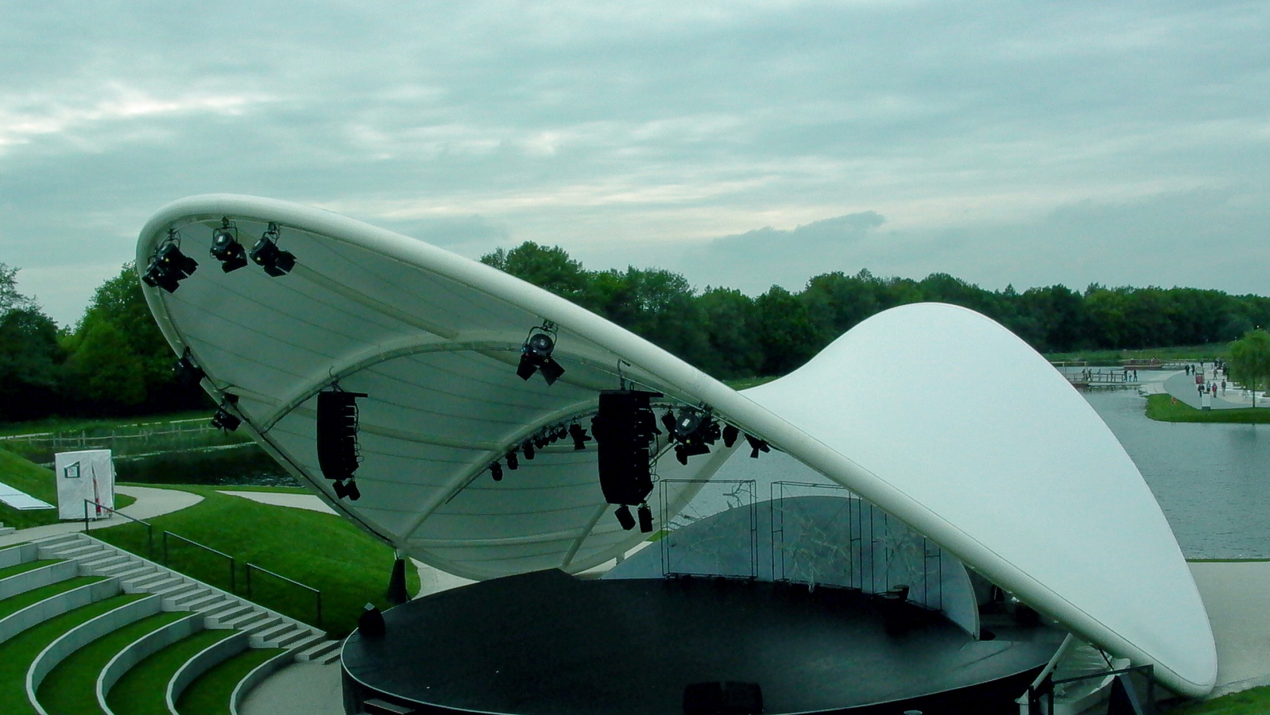 De podiumoverkapping van het amfitheater voor de Floriade 2012 heeft een sculpturale dubbelgekromde vorm en bestaat uit een membraan, bevestigd op een staalconstructie. De overkapping beschermt artiesten bij regen of andere ongewenste weersinvloeden en laat tegelijkertijd een optimaal zicht op het podium toe vanaf de tribunes. De membraanvorm levert ook een positieve bijdrage aan de akoestiek in het theater.