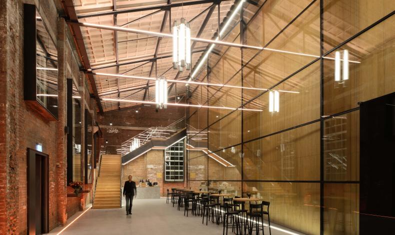 Om het unieke karakter van het ensemble en van het interieur te behouden is er in het ontwerp terughoudend en zorgvuldig omgegaan met veranderingen. Om de ruimtelijke belevenis van de monumentale hallen te waarborgen, is de grote zaal uitgevoerd als een glazen theater. Daarmee kenmerkt de nieuwe toevoeging zich door een transparantie die haaks staat op het introverte karakter van het monument zelf. Toch heeft het theater zich met een vanzelfsprekendheid in het monument genesteld en door het glas ontstaan lange zichtlijnen, waardoor 'zien en gezien worden' het leidende thema wordt, geheel in traditie van het theater waar het sociale aspect vaak net zo belangrijk is als de voorstelling zelf. De kracht van de interventie schuilt in de precisie van de restauratie, in combinatie met de radicaliteit van de toevoegingen.