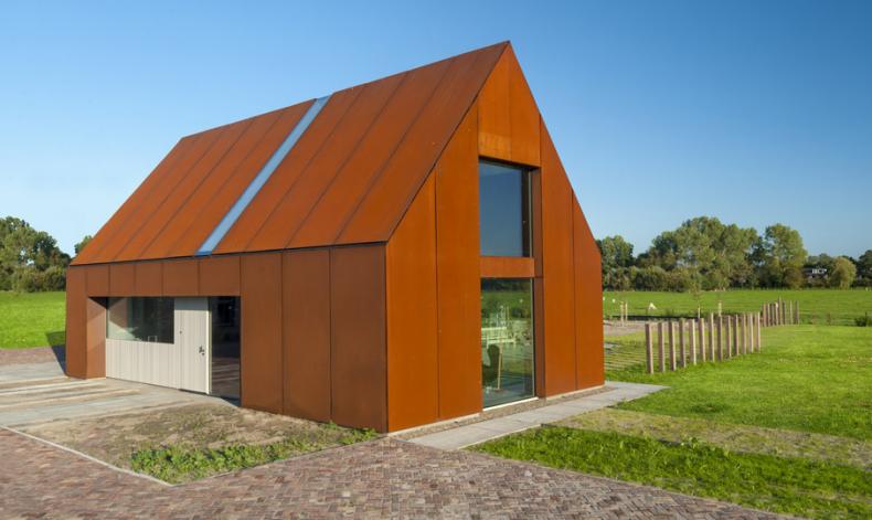 Cortenstaal verandert als geen ander materiaal onder invloed van tijd en weer. In de polder kan het weer snel omslaan. Dat maakt dat het aanzien van de woning elke dag weer anders is.
