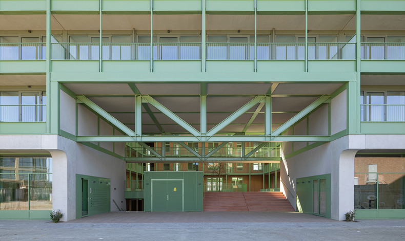 Een industrieel en alzijdig, functioneel woongebouw met waarachtige stalen elementen. Duidelijk herkenbaar door hun eigen frisse bleekgroene kleurstelling, verwijzend naar het industriële verleden van de plek.