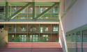 Het hof verhoogde hof heeft ten overstaan van de strenge buitengevel een warmer en informeler van karakter kent een familiare staalconstructie die de galerijen draagt met een iets vereenvoudigde en transparantere uitstraling.