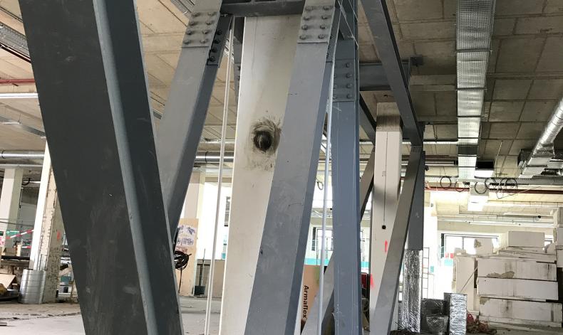 Nadat de vakwerken op spanning stonden was het vervolgens mogelijk om de bestaande kolom op de begane grond af te knippen.