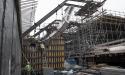 De constructie van het schaaldak werkt pas op de manier zoals bedoeld is op het moment dat deze volledig afgelast is. Het dak is dan ook volledig ondersteund geweest tot dat specifieke moment. Met het uitgangspunt dat de onderliggende constructie weinig tot geen capaciteit heeft voor tijdelijke ondersteuning en daarbij de complexiteit van de vorm op zich, is het opzetten van het ondersteuningsplan een grote uitdaging geweest. Er zijn in samenspraak met de betrokkenen diverse op maat gemaakte hulpmiddelen ontwikkeld, passend bij de montage van de stalen secties op een ondersteuningsconstructie van standaard steigermaterieel. Het gebruik van staal heeft hierbij grote voordelen opgeleverd ten opzichte van beton. Ondanks de forse inspanning die hier geleverd is zou een betonvariant een nog veel grotere uitdaging gevormd hebben. Het betonnen dak was namelijk drie keer zo zwaar en de ondersteuning had in dat geval in één keer, gelijkmatig, verwijderd moeten worden. Met de ervaring van de staalconstructie lijkt dit bijna onmogelijk.