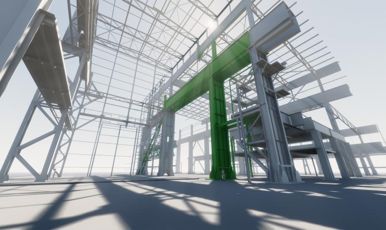 Een ander bouwkundig aspect is de kraanbaanligger met een overspanning van 25 m. Volgens de Tata-richtlijn voor kraanbanen zou deze ontworpen moeten worden als een kokerligger. In dit geval is de kraanbaanligger vanwege het hergebruik van de bestaande oplegblokken en de beperkte productiestilstand uitgevoerd als een I-profiel.