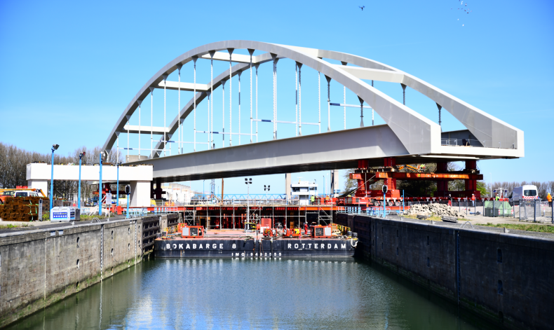 De stalen boogbrug over de Rozenburgsesluis heeft een overspanning van 172 meter en is goed voor 4.500 ton staal. De brugdelen werden geproduceerd in stukken tot circa 500 ton en 40 meter lengte. Deze stukken werden op locatie in elkaar gebouwd, afgelast en geconserveerd.